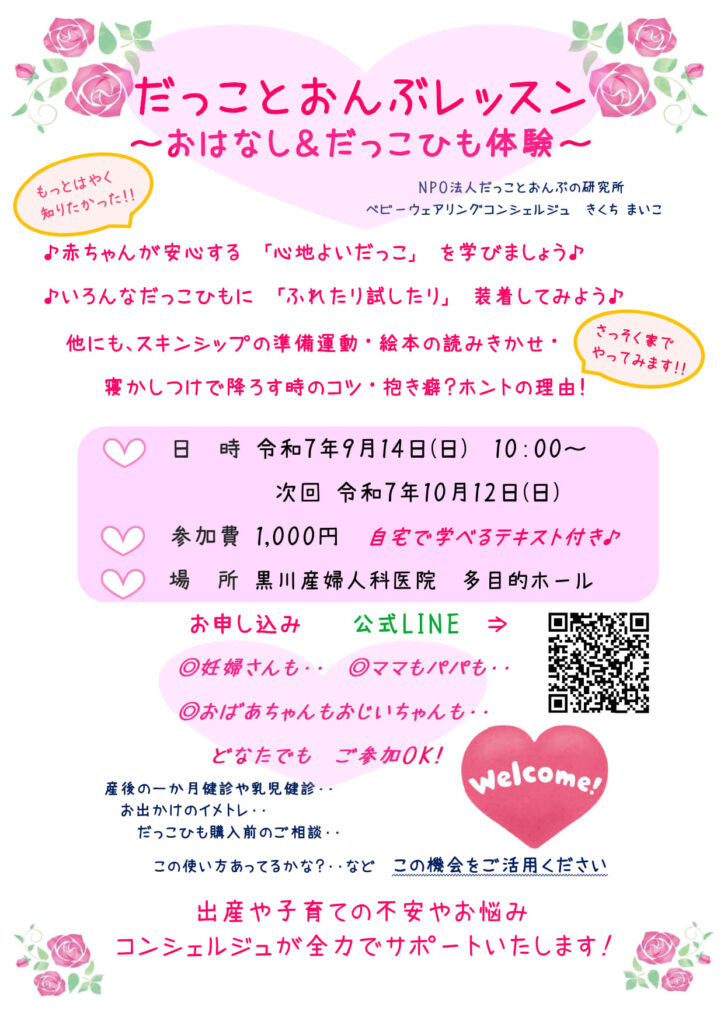 だっことおんぶレッスン~おはなし&だっこひも体験~を当院会場として下記日程で行います。。